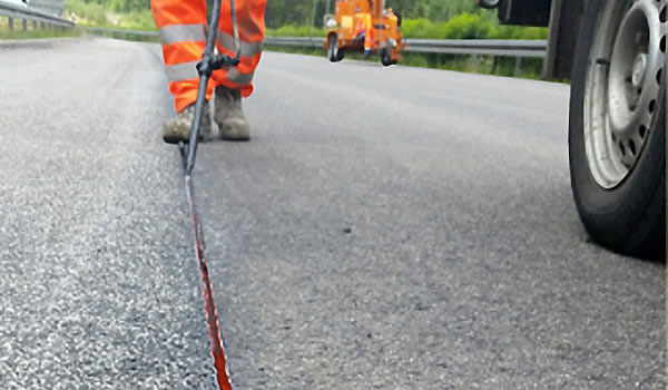 Asphaltschichten bei einseitiger Querneigung höher liegenden Ränder anspritzen