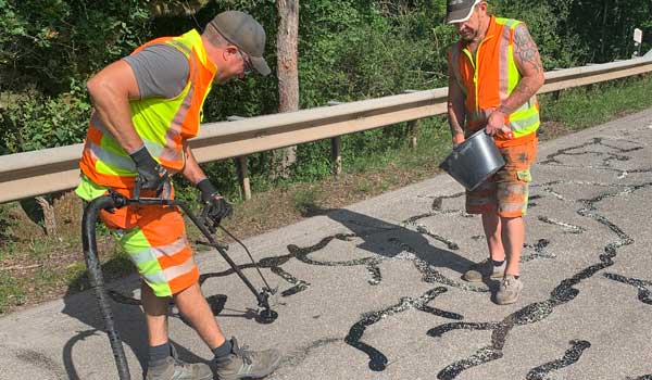 Verfüllen der Fugen mit bituminösen Fugenmassen gemäß ZTV und TL Fug StB mittels indirekt beheizten Vergusskochern